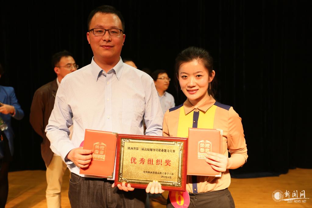 2014年4月辅导员张景会、李萌双双荣获省第二届高校辅导员职业能力大赛一等奖