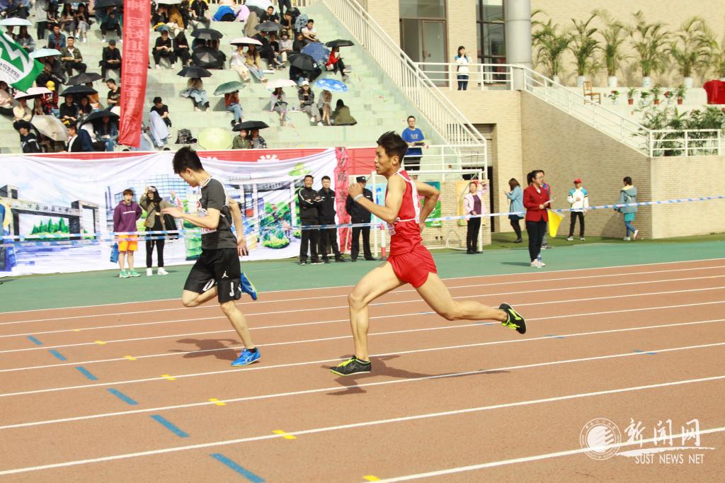 在紧张的气氛中,男子1500米终于开启了征程,观众的欢呼加油声不绝于耳,进入了运动场内气氛的小高潮。凉风微雨更坚定了选手们奔腾夺冠的信念,他们冲刺向前一如万马奔腾,来自电信学院的袁少明同学最终以压倒性的优势夺得了此次比赛的冠军,获得了同学们热烈的喝彩声。