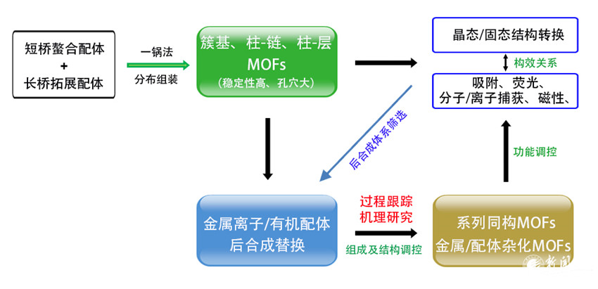 (2)科学问题是关键。开展科学研究的本质目的是解决一定科学问题。没有科学问题的申请书必然缺少灵魂与指引。其中特别需要注意的是,立项依据是为了引出科学问题;研究内容、方案、方法路线是为了阐述如何解决问题;预期目标反映科学问题的解决程度。本项目的核心科学问题就是目前很不清楚的MOFs后合成替换机理。我在这个问题的凝练上的确花费了很长时间,但是明确该问题后,个人感觉申请书的撰写一下变得非常清楚明晰。