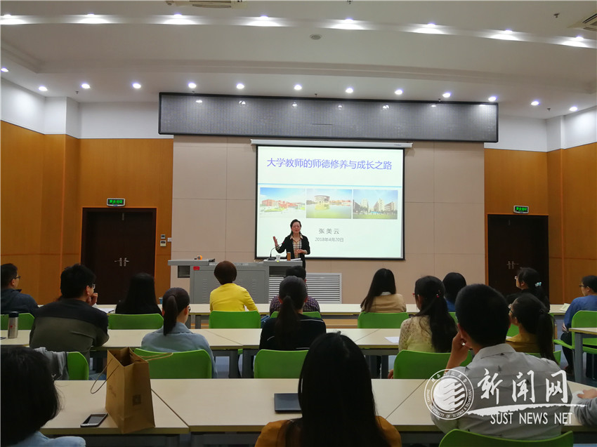 4月20日下午,张美云教授应校党委教师工作部、教师发展中心邀请,做客“名师论坛”,全校青年教师代表120余人参加。报告会由党委教师工作部部长崔楠主持。张教授以《大学教师的师德与成长之路》为题,分享了自己从陕科大求学开始,逐渐成长为“国家科技进步二等奖”获得者、国家“十三五”重点研发计划首席科学家、国家“万人计划”教学名师,在教学、科研各方面收获累累硕果的历程。她认为一名优秀教师应从 “爱心、责任、素质、方法”做起,并从“明道、务本、精业”几方面作了精彩诠释。首先,爱是教育的灵魂,热爱是最好的老师,只有热爱教育事业、热爱自身专业、热爱学生、热爱学习,才能数十年如一日的坚持奋斗,甘于奉献,在平凡的教师岗位上做出不平凡的成绩。谈到责任时,她认为教师必须具备扎实的知识功底,过硬的教学能力,勤勉的教学态度和科学的教学方法,教师的言行将潜移默化影响学生的一生,要做一名值得学生学习尊敬的人。勉励青年教师正确设计职业生涯目标,逐步明确自身定位,形成稳定的教研方向。做学问要耐得住寂寞,守得住清贫,要有做苦行僧的思想准备。最后,她着重强调课堂教学,并告诫大家苦练教学基本功,以老一辈教师为榜样,做学生敬佩并喜爱的好老师。张教授对年轻的教师们给予了很高的期望,希望大家自足岗位,履职尽责,齐心协力,共同助力陕科大的发展,把学校各项事业推向更高的水平。接近两个小时的报告会,大家都被张教授独特个人的魅力,深入浅出的讲解,春风化雨般的语言深深吸引。她不断超越自我、追求卓越的精神深深感染和激励着在场的的每位教师。