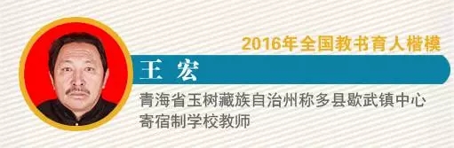 王宏,男,藏族,1965年5月出生,中共党员,青海省玉树藏族自治州称多县歇武镇中心寄宿制学校教师。从教28年来,一直默默耕耘在基层农牧区学校教学一线。他践行“爱与责任”教书育人理念,以校为家、不改初心,以心换心、以爱育爱。2010年玉树大地震中,王宏不顾身体残疾,积极投身抗灾救灾工作,并带头为灾区捐款。他坚持创新求进,大胆变革传统教学,让孩子成为课堂主人。他还积极参加教育科研活动,是老师们公认的“学习型教师”、教师团队中的领头雁和带路人。曾获青海省中小学优秀思政教师等荣誉。