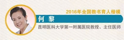 何黎,女,彝族,1962年8月出生,中共党员,昆明医科大学第一附属医院教授、主任医师。从教30年,一直坚守在教学一线。作为教学名师,她始终坚持为本科学生上课,深受学生喜爱。她采用案例式教学,构建教学流程,建立具有云南地方特色的皮肤性病学教学体系,并首次以病案讨论形式主编教材。她秉持“育人德为先,身教胜言传”的理念,努力将最新理论和精湛医术传授给广大学生及临床医生,培养了大量实用型医学人才。曾获全国劳动模范、全国优秀教师、全国先进女职工等荣誉。