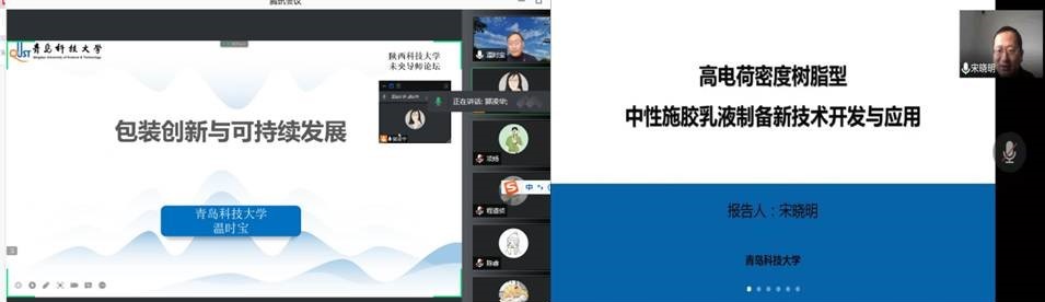 1月24—25日,应轻工科学与工程学院和研究生院邀请,青岛科技大学温时宝、宋晓明副教授做客我院“未央导师论坛”,分别作了题为“包装创新与可持续发展”“高电荷密度树脂型中性施胶乳液制备新技术开发与应用”的报告。报告会由我院主管科研刘院长主持,学院相关教师和研究生参加了本次报告会。因受疫情影响,本次报告采取线上会议方式进行。